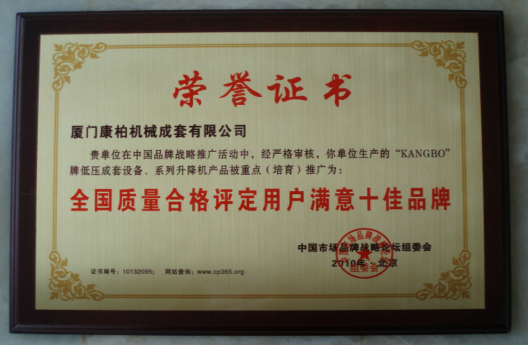 2010年全国质量合格评定十佳品牌