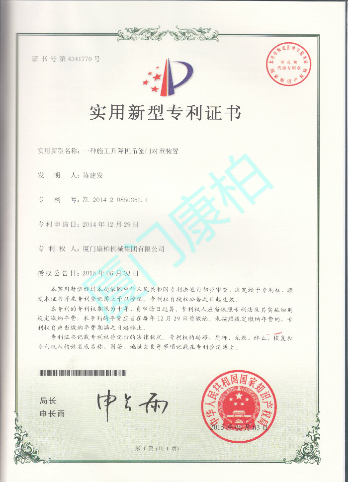 • 吊笼门对重装置